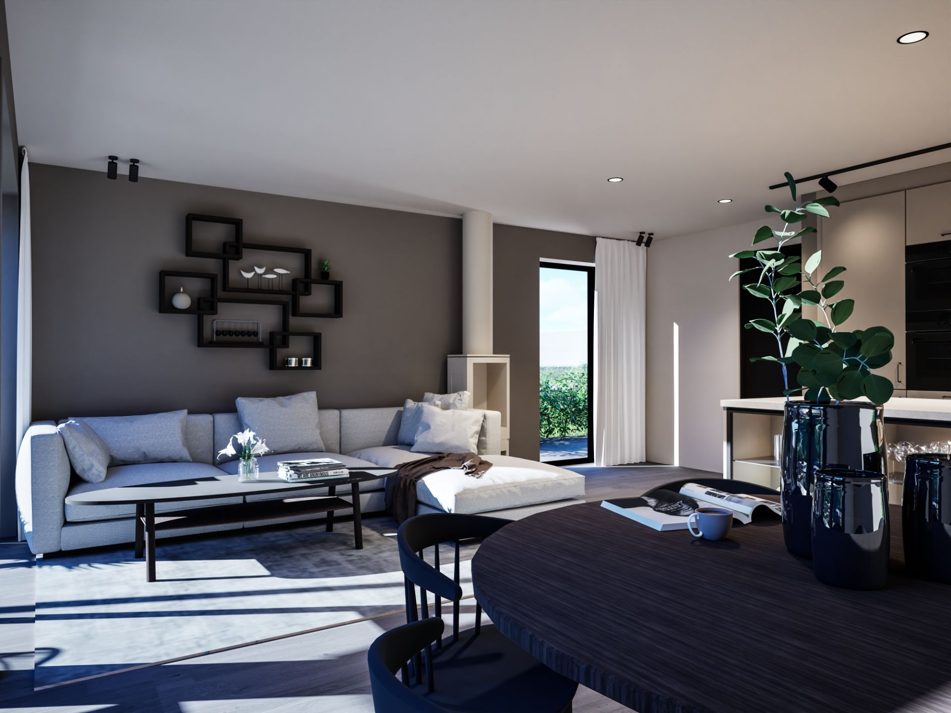 Konseptet Modern preges av lune jordtoner, både i lys og mørk brun, med elegante mørke detaljer og mørkt treverk, som gir et stilrent og moderne uttrykk. Dette er et hjem som kombinerer estetikk med funksjonalitet, perfekt for en moderne livsstil.